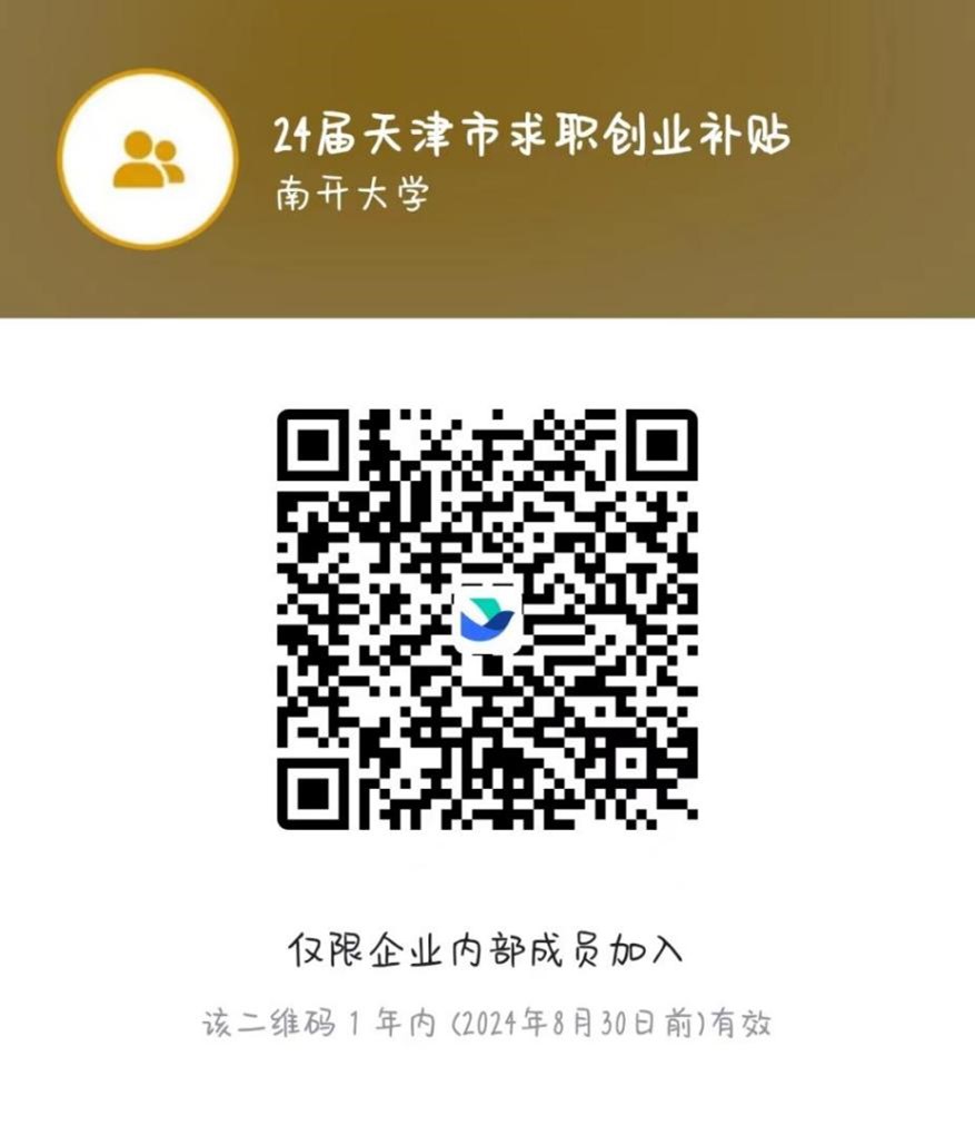 请申请2024届天津市求职创业补贴的同学扫码加入飞书群,今后公司就业指导中心将对申请该补贴的同学进行就业帮扶。