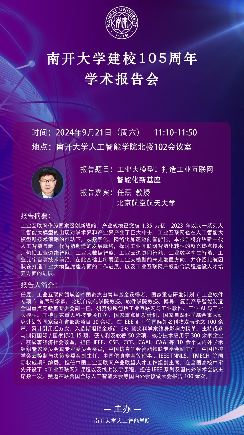 报告4:工业大模型:打造工业互联网智能化新基座 报告人:任磊 教授(北京航空航天大学) |