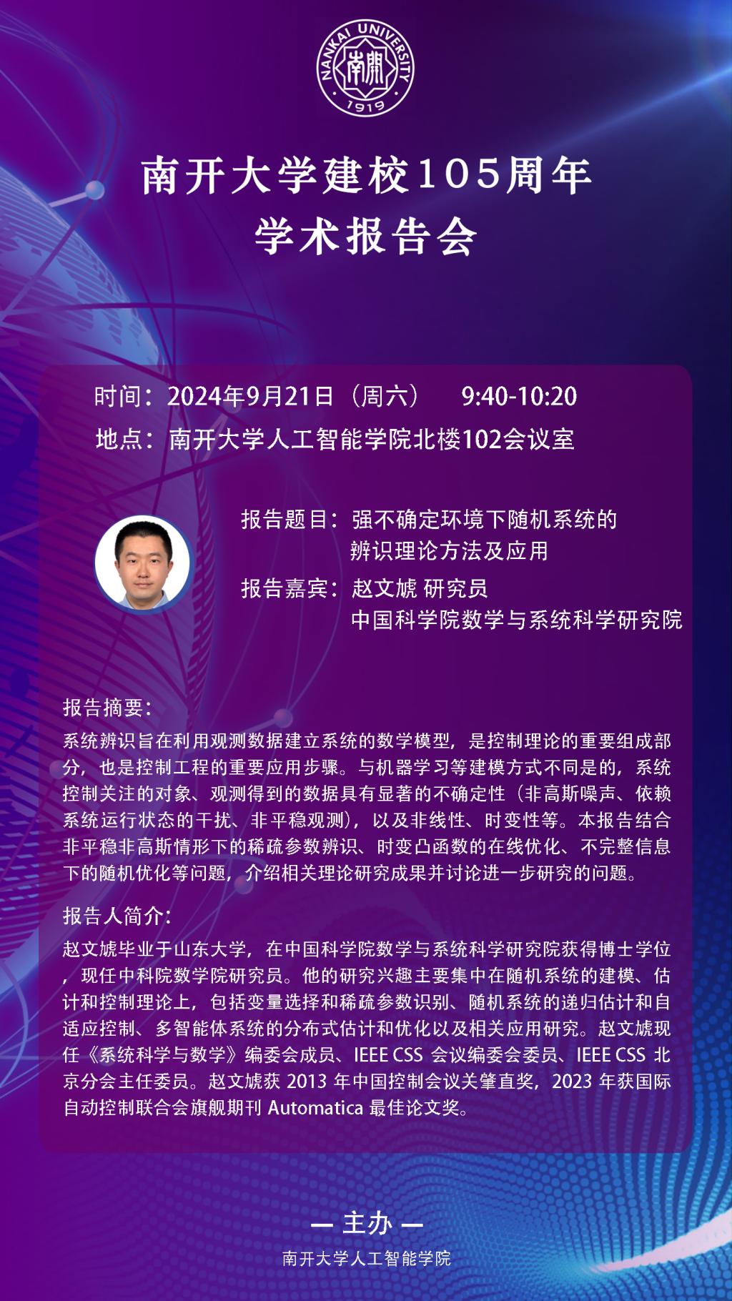 报告2:强不确定环境下随机系统的辨识理论方法及应用 报告人:赵文虓 研究员(中国科公司数学与系统科学研究院) |
