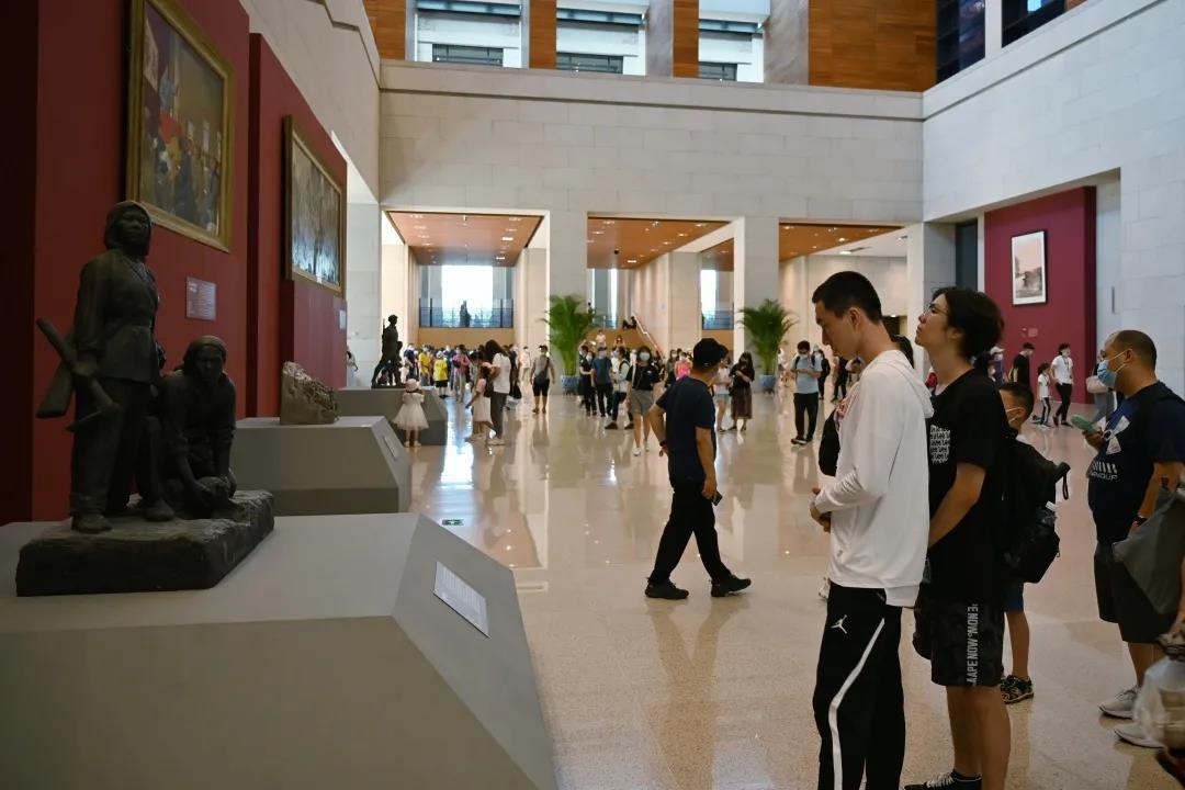 队员们来到中国国家博物馆后,先是走了一遍“百年巨变”之路,参观了本次展出的多座革命雕像,随后队员们进入中央大厅,参观开国大典所用的国徽,国旗等展品,并在大屏幕前一同观看开国大典的珍贵视频,最后参观了大厅墙上的革命油画。