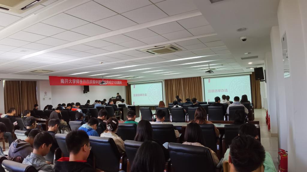 主持人向大会介绍了会议流程,赵煜对选举办法进行了宣读,大会决定由王启瑞等五名同学担任本次选举的监票人、计票人,谭莹向大会介绍了候选人的基本情况以及投票时的注意事项。