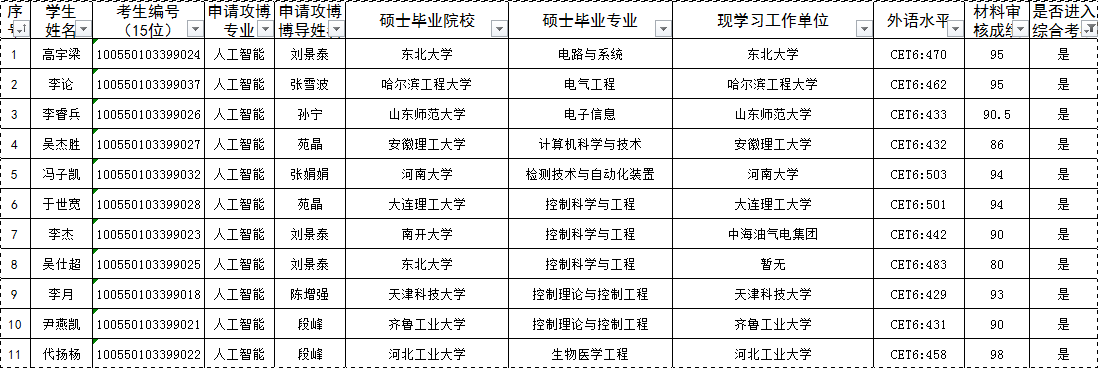 2020级博士研究生申请考核制入围考核人员公示(第三批)
