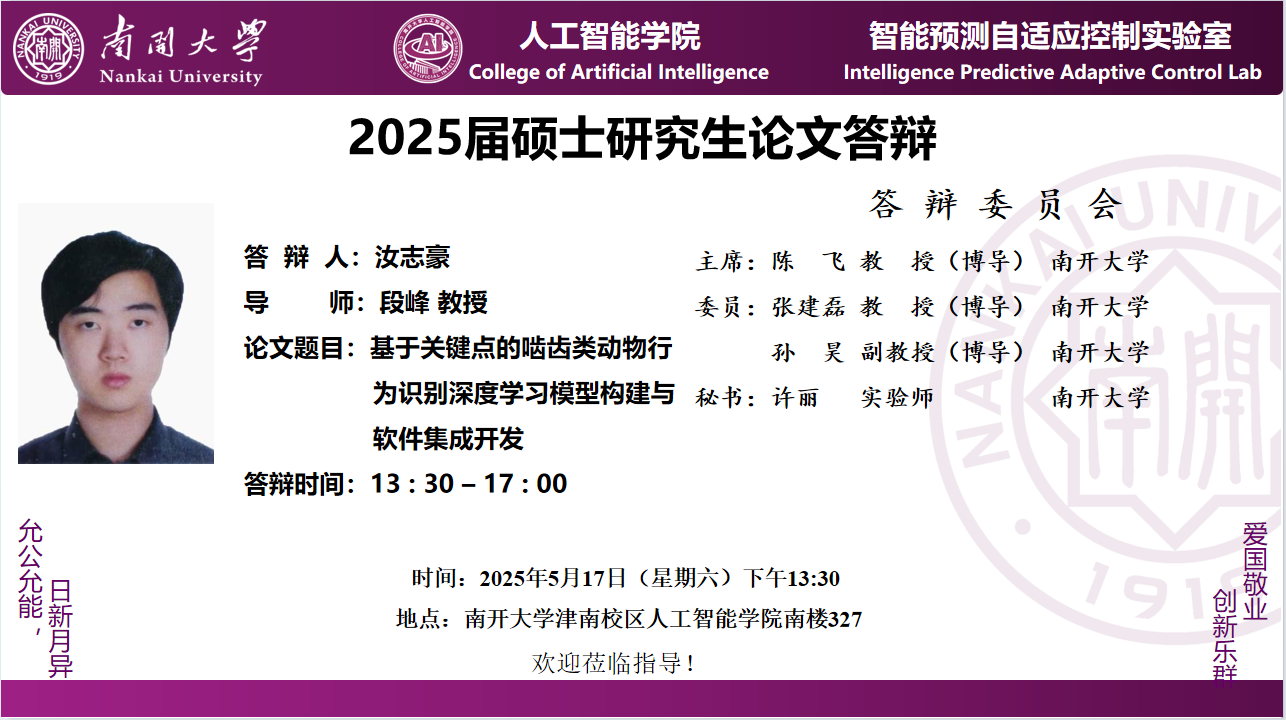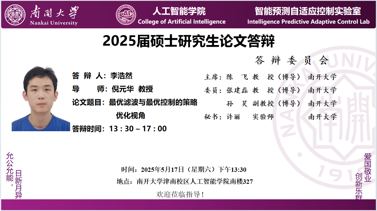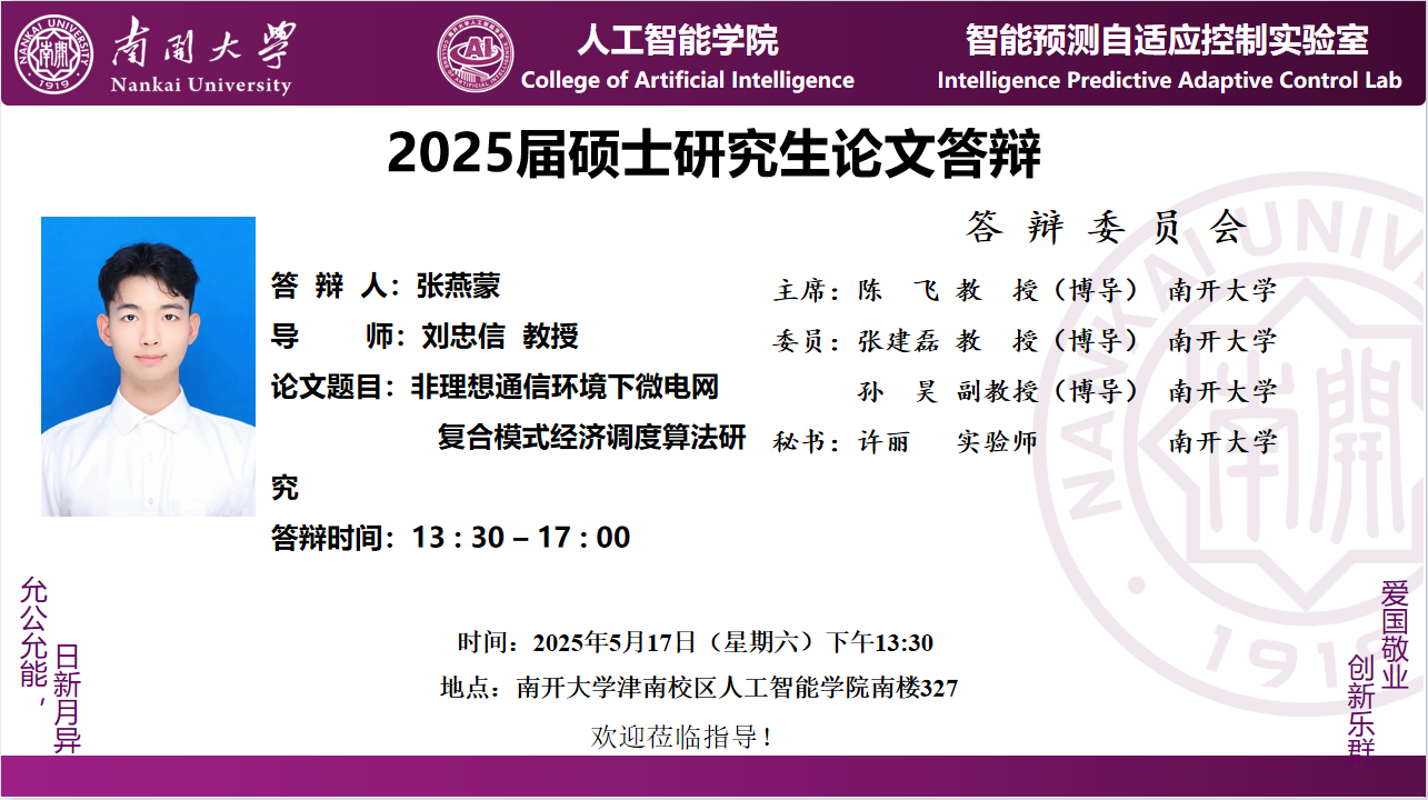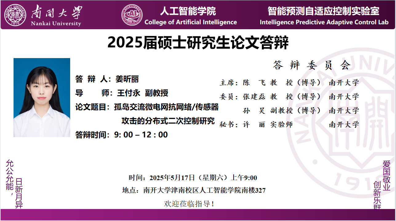 【答辩】2025届夏季毕业答辩公告----自动化系(学硕)