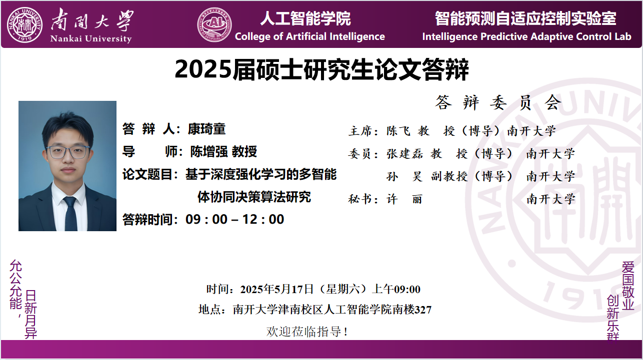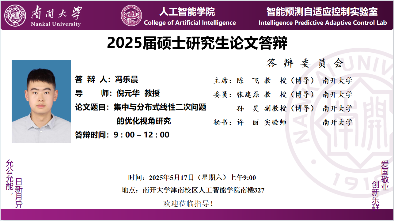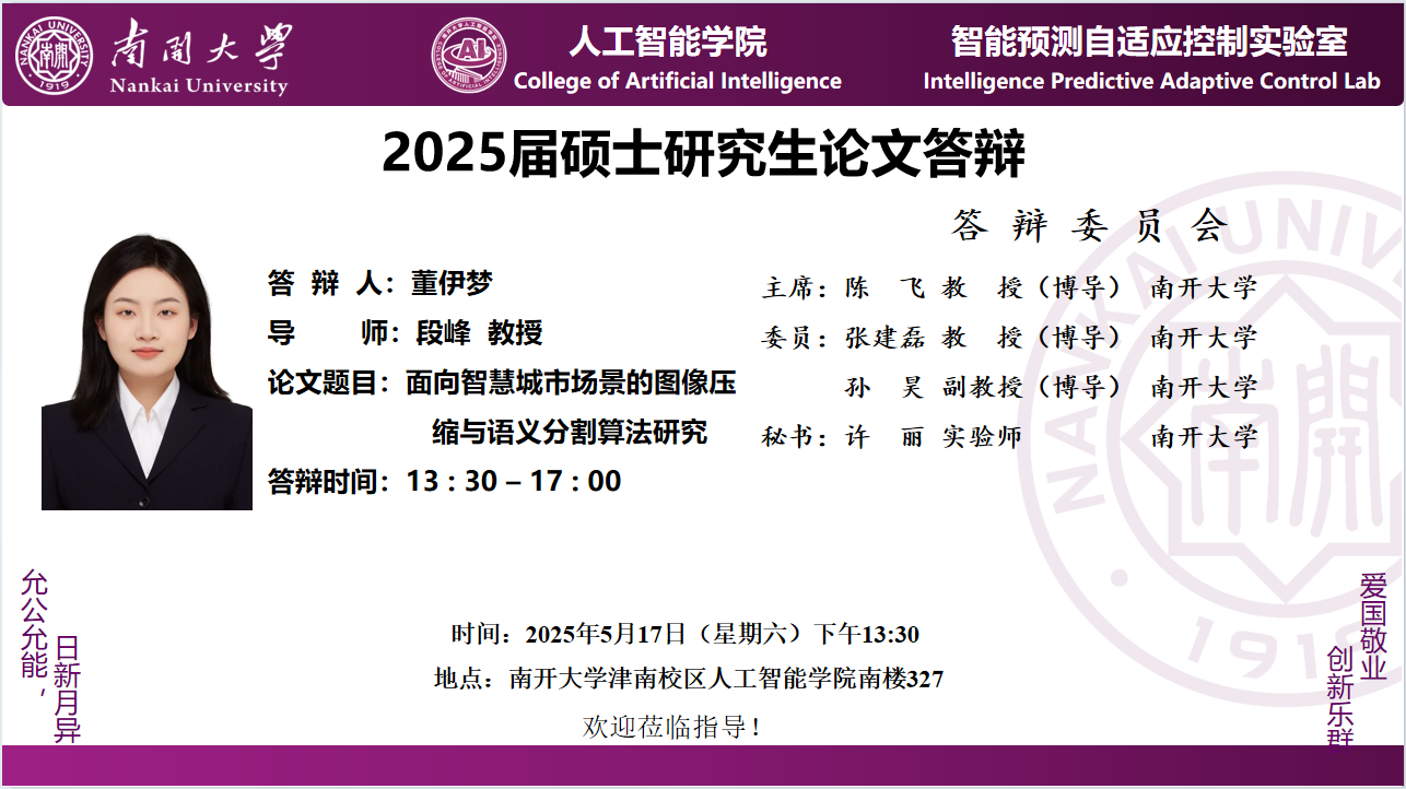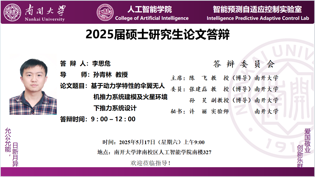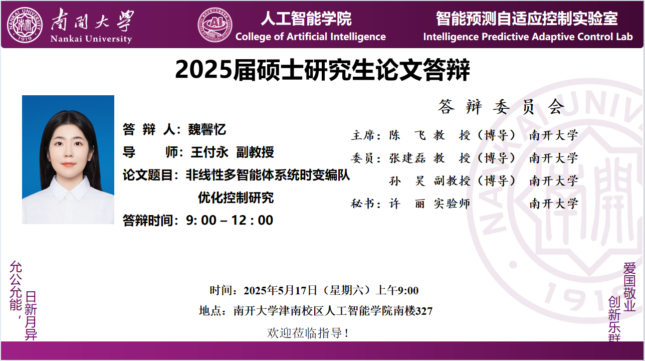 【答辩】2025届夏季毕业答辩公告----自动化系(学硕)