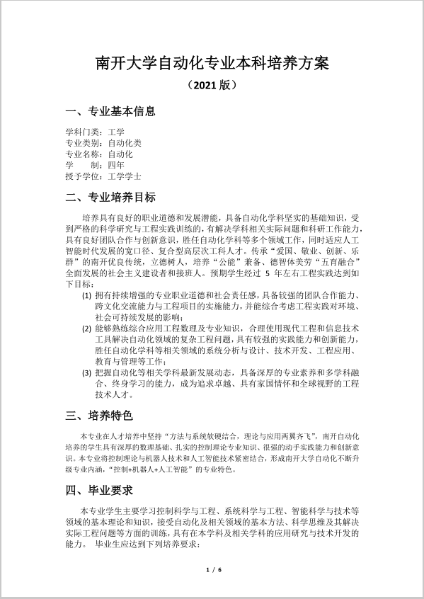 365英国上市公司自动化专业本科培养方案 (2021版)